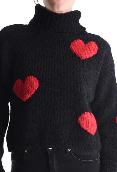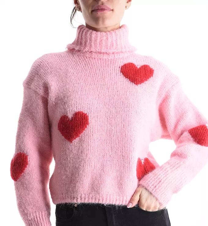 Precioso jersey de mezcla de lana con estampado de corazones, cuello alto y manga larga. Muy suave y calentito.