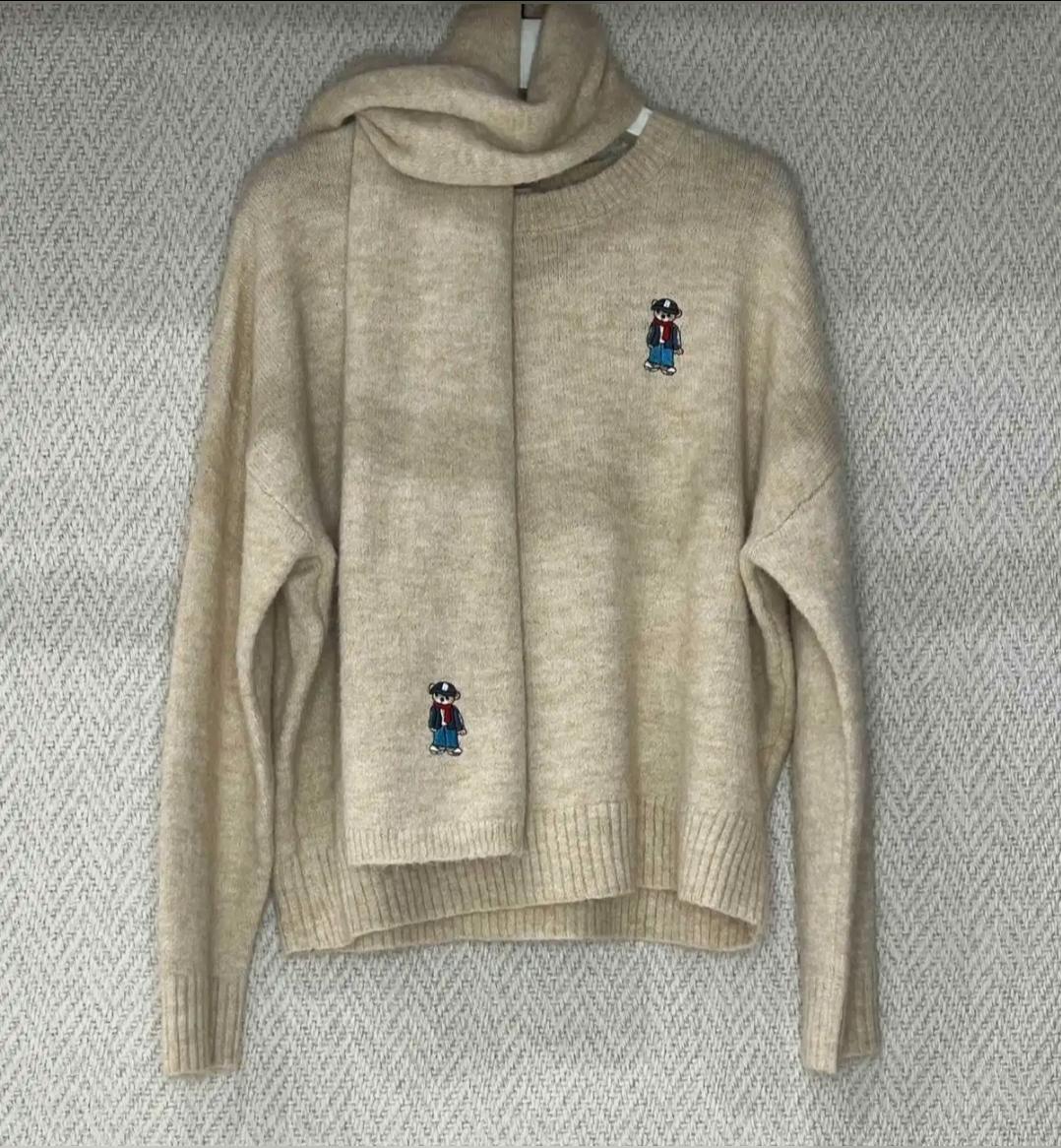 Precioso Jersey con Bufanda a juego con un osito bordado.