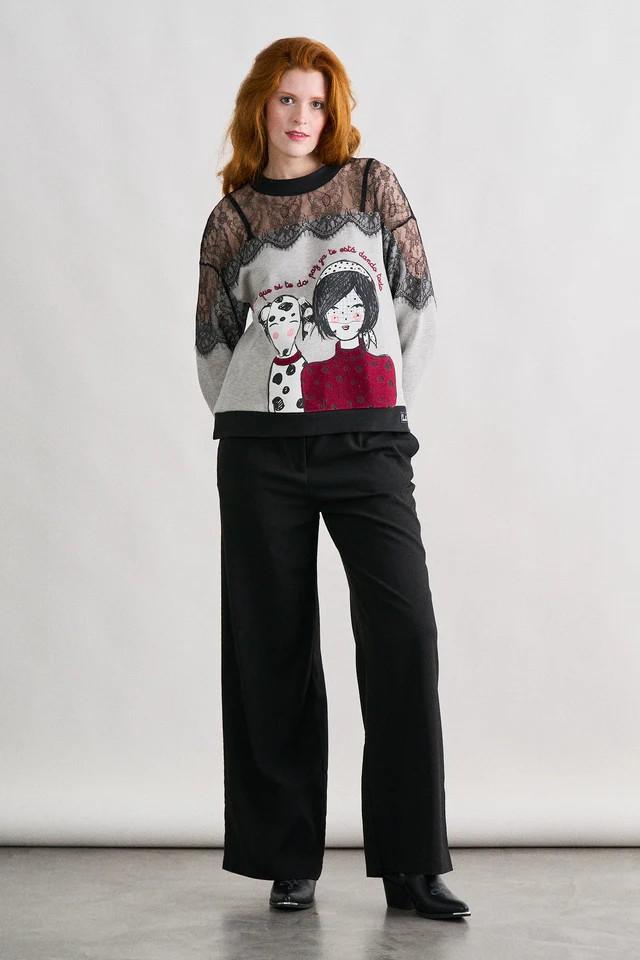 -Maxi print delantero con detalle de floko sobre la ilustración y la frase.