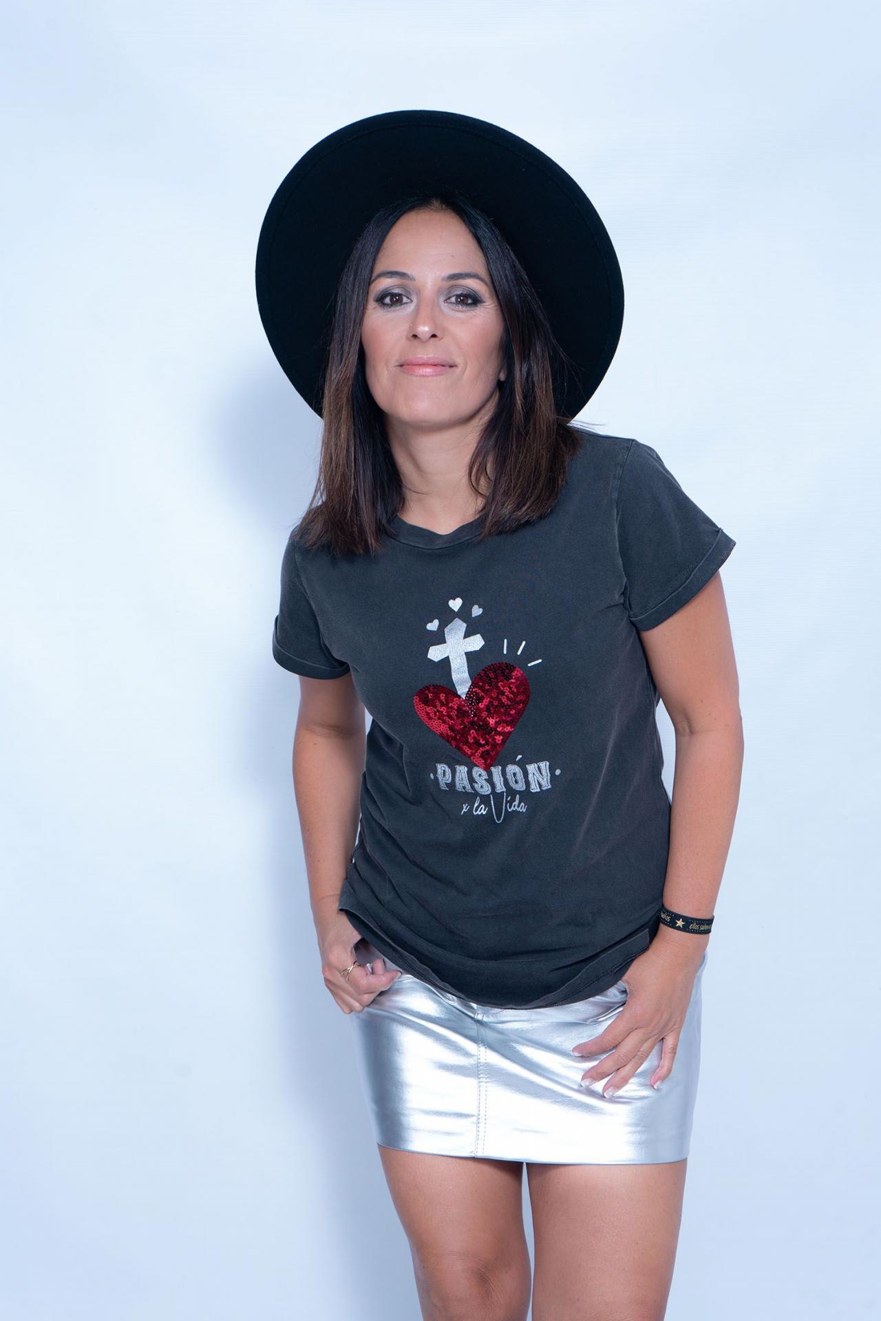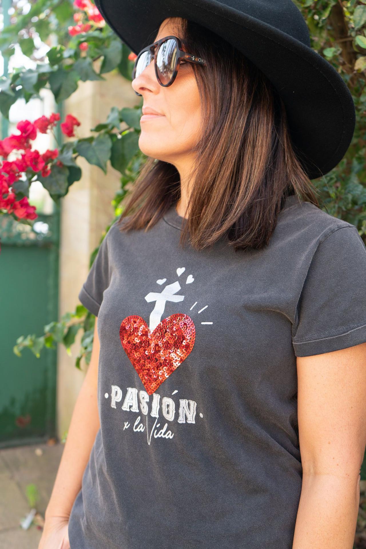 – Print “PASIÓN” en el pecho combinado con corazón bordado en paillettes rojas.